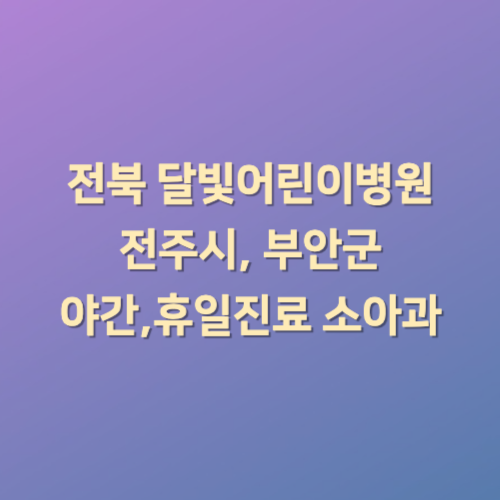 안녕하세요. 오늘은 전북 전주시와 부안군에 위치한 달빛어린이병원에 대해 포스팅하고자 합니다. 어린 영유아들은 낮에 잘 지내다가 갑자기 야간에 이유 모르게 열이 오를 때가 있습니다. 그럴 때 양육자는 등에서 식은땀이 나고 밤에 한숨도 못 자는 경우가 허다합니다. 이럴 때는 우리 주변에 위치한 달빛어린이병원에서 빠르게 진료받아 아이의 컨디션을 다시 돌려놓는 게 좋을 것 같습니다.